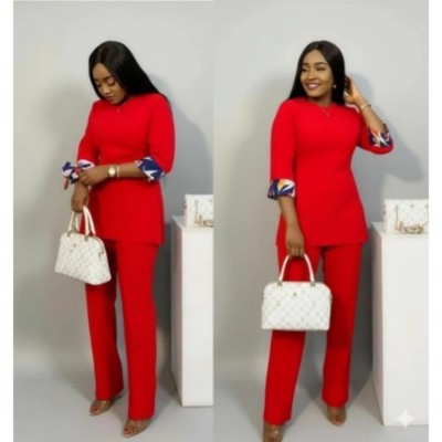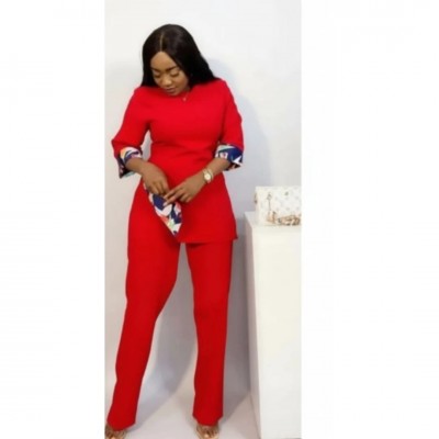 Two-piece Set With Patterned Cuffs - Size 12 - Red