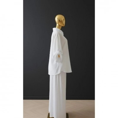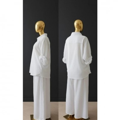 home > apparel > Скучать > Women's Relaxed Textured Two-piece Set – Long Sleeve Shirt & Wide-leg Pants - White