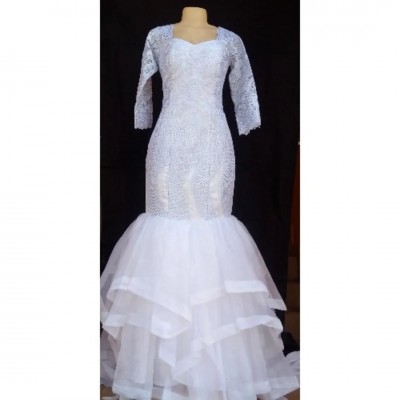 Elizabeth-cut High Neckline Wedding Dress - Size 12