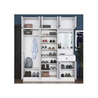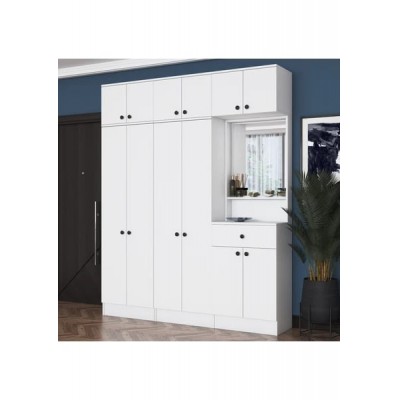 Rani EA142 Portmanto Çekmeceli Aynalı Askılı Ayakkabılık Vestiyer Beyaz