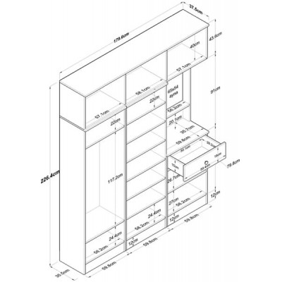 Askılı Modül: Genişlik: 59,8 cm - Derinlik: 37,5 cm - Yükseklik: 182,8 cm