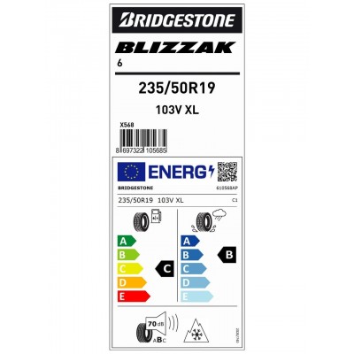 home > DIY Market / Garden / Auto > Bridgestone 235/50R19 103V Xl Blizzak 6 Winter Tire (Production DATE: 2025)