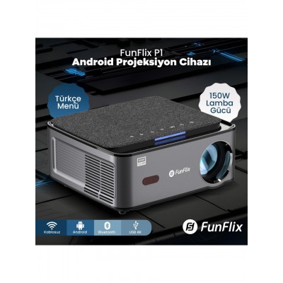home > White Goods / Kitchen > FunFlix P1 Android 4K Supported LED Full HD Projector, Bluetooth, 150W Lamp, 300 Inch Image