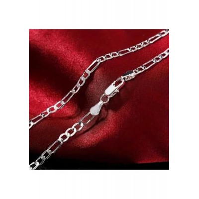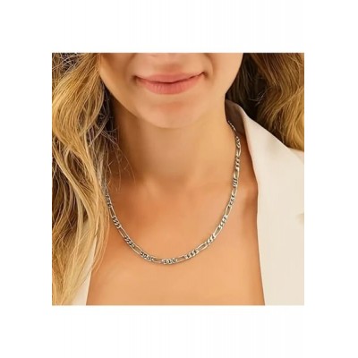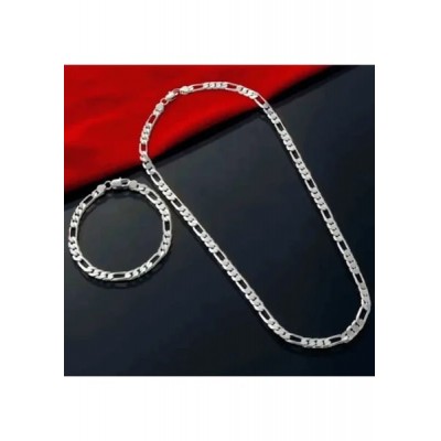 Saturn Silver Jewelry Steel Figaro Chain Men's Necklace and Bracelet Set Tarnish Resistant Steel Necklace Steel Chain Necklace