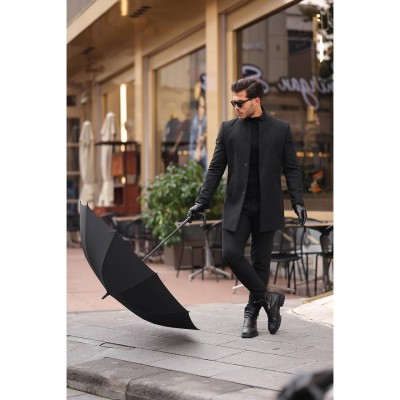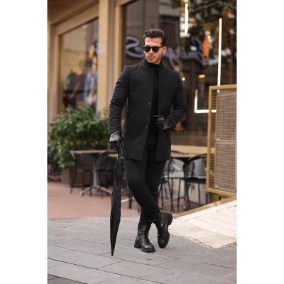 Hello7 Men's Black Regular Fit Cashmere Coat New Season
