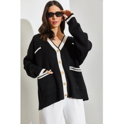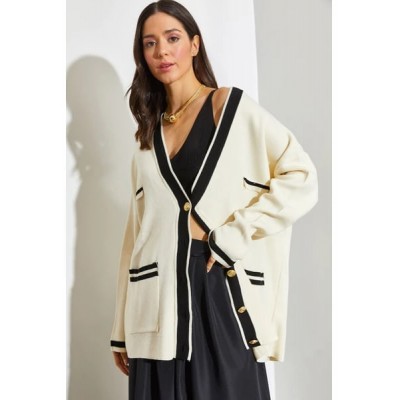 Shade Women's Double Pocket Striped Buttoned Oversize Cardigan