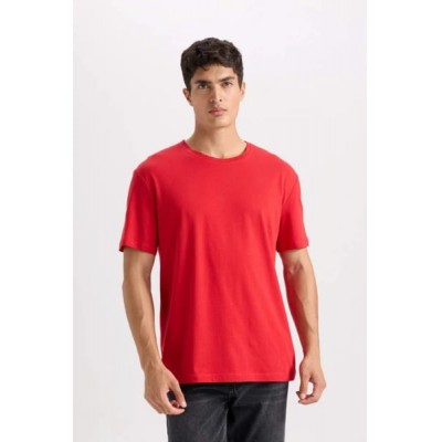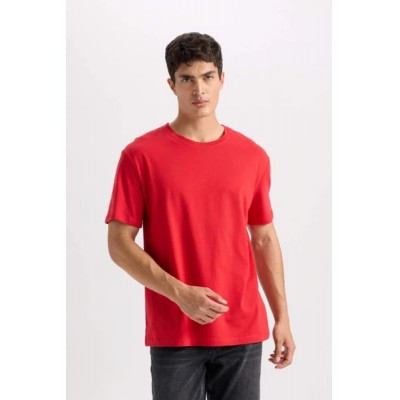 DeFacto 100% Cotton New Regular Fit Crew Neck Basic Plain Short Sleeve T-Shirt E1091AXNS