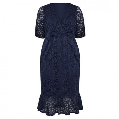 Yours Clothing Women Curve Navy Lace Wrap Dress - Plus Size
