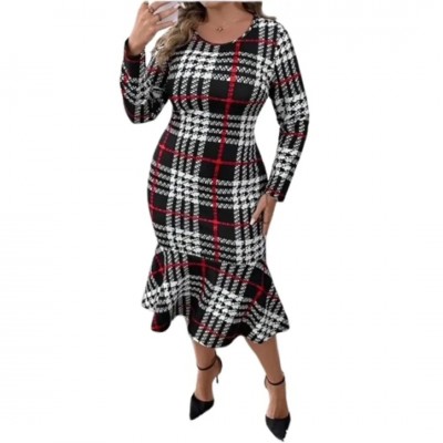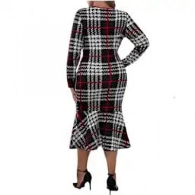Fit And Flare Longsleeve Crew Neck Plaid Dress