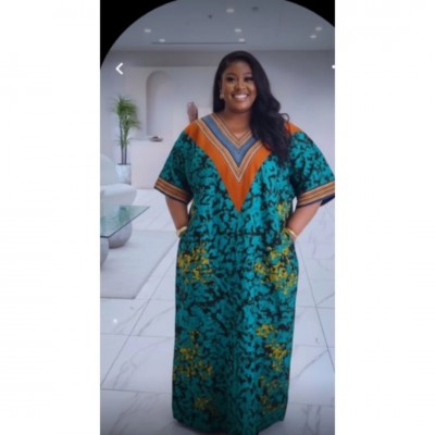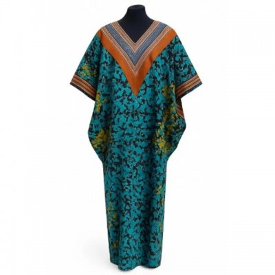 home > Vêtements et accessoires > femelle > Kaftan Dress With Contrast V-yoke - Teal & Orange Print - Length 56